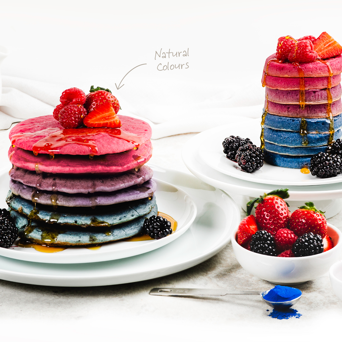 These colourful pancakes will add some fun to your day. Since this recipe uses natural colours, you can have your (pan)cake and eat it too!